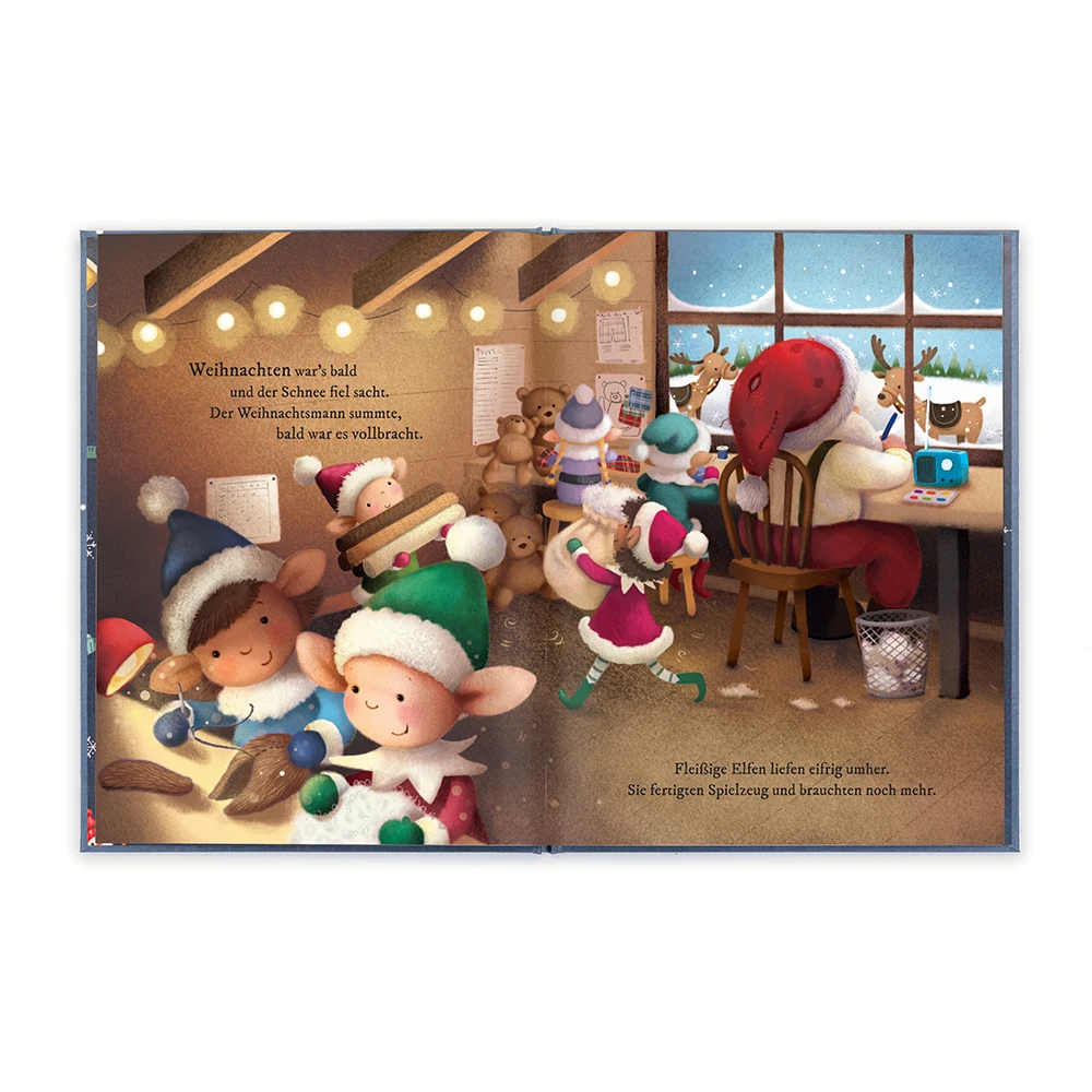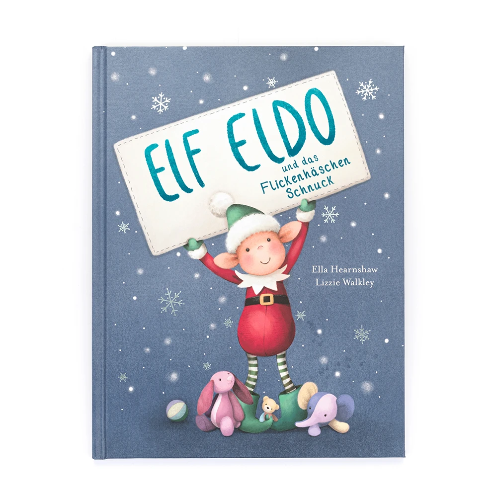 Das Eldo Elf und das Flickenhäschen Schnuck – Buch von Jellycat ist eine wunderbare Weihnachtslektüre für jung und alt – zum Angucken, Vorlesen, Nacherzählen: Kurz vor Weihnachten ist die Weihnachtsmannwerkstatt plötzlich ohne Stoff! Au weia! Aber Eldo Elf läßt sich was Schlaues einfallen …